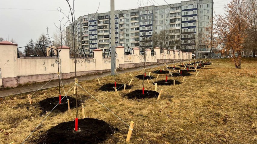 Это специальные гофрированные пластиковые трубы, рассказали в мэрии. Их надели на стволы, чтобы защитить растения от повреждений и выкашивания травы весной.