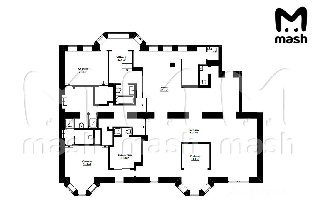 По информации Mash, площадь роскошной недвиги в "Доме искусств" на Поварской улице — 317 квадратов. Внутри: гостиная, столовая, кухня, кабинет, три спальни, каждая со своей ванной и гардеробной, гостевой санузел, отдельная комната для одежды, постирочная, помещение для персонала. Высота потолка аж четыре метра.