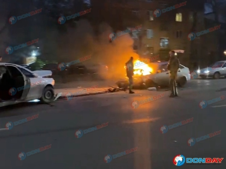 Лобовое столкновение произошло в Ростове на проспекте Шолохова. В результате сгорела «Лада-Приора». Предполагаемой причиной аварии очевидцы называют выскочившего под колеса пешехода.