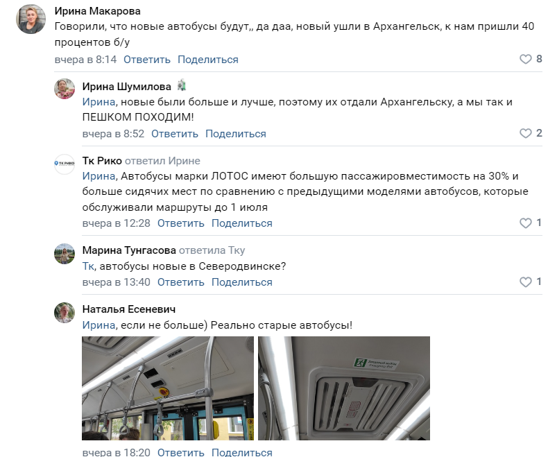 — А почему автобусы такие убитые? Я не езжу на них, но даже со стороны увидела, какие они грязные! У одного беспощадно скрипели колодки при торможении...неужели жители Северодвинска заслуживают такое? — пожаловалась в соцсетях северодвинка Ксения.