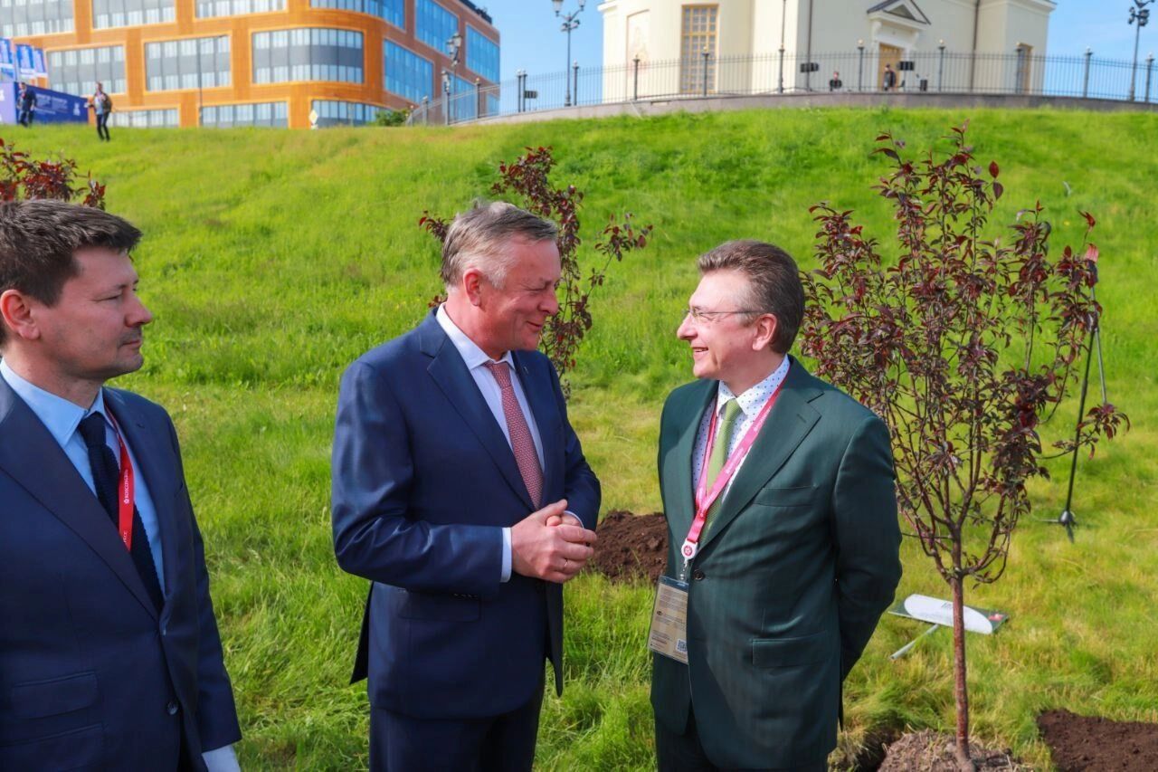 Петербургский международный экономический форум стартовал с патриотической акции фонда «Древо жизни» — высадки деревьев в память о защитниках блокадного Ленинграда. Всего участники церемонии, которая стала неформальным открытием ПМЭФ, посадили 80 деревьев — в честь 80-летия Великой Победы.