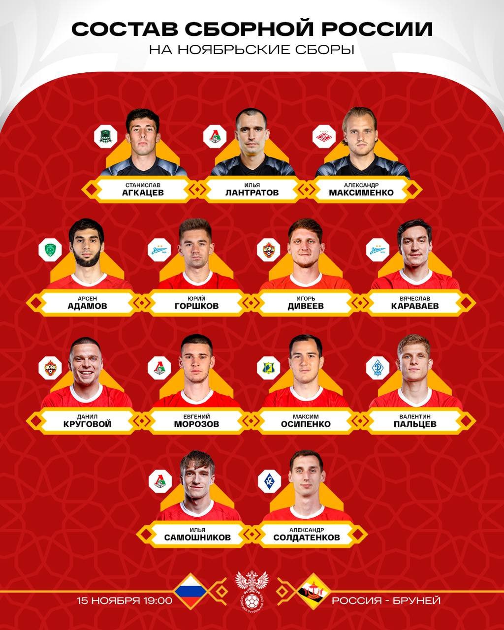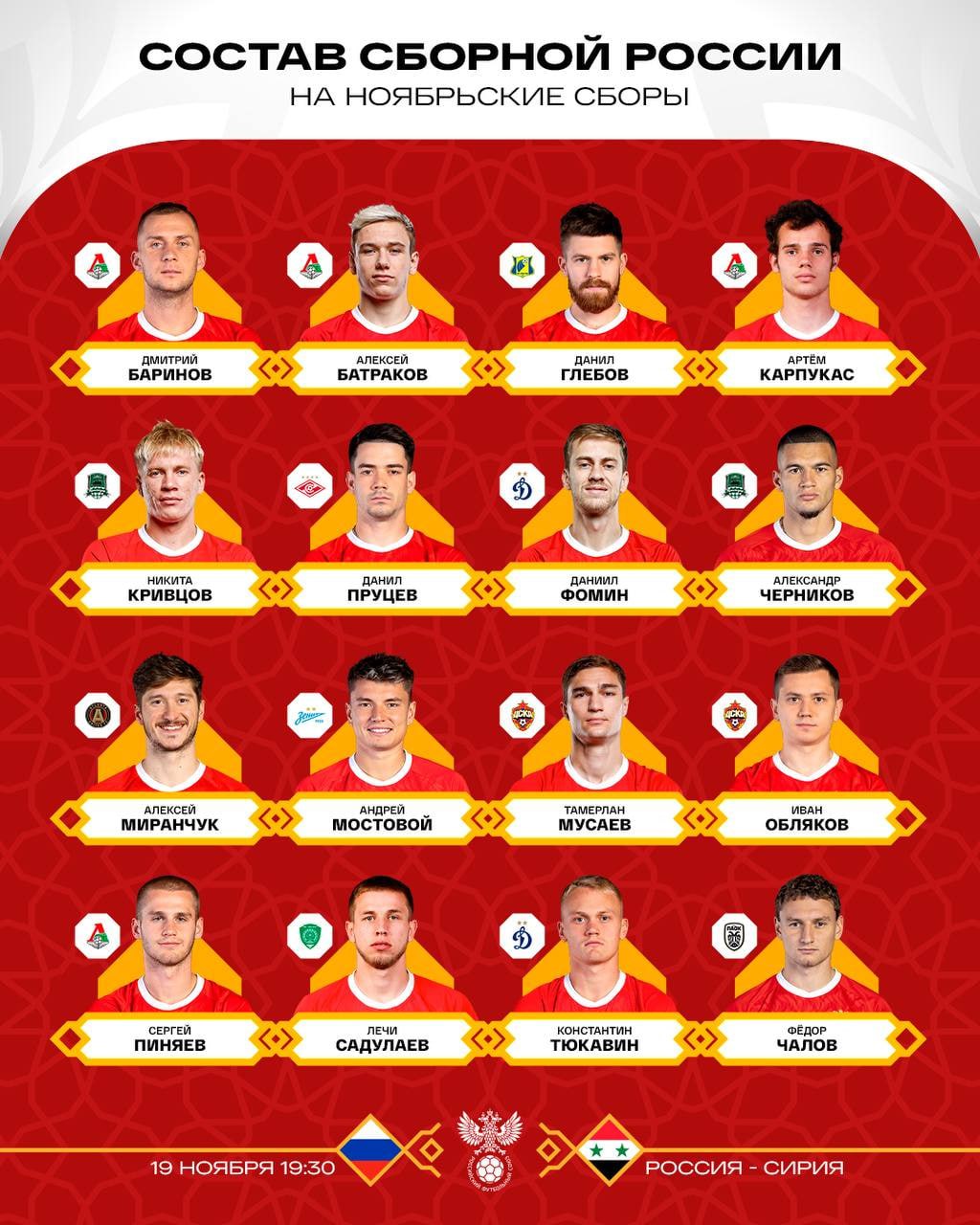 Окончательный состав сборной России на игры против Брунея и Сирии