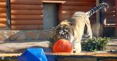 Судя по фотографиям, еды хватило на всех, и животные остались очень довольны обедом. Тигр полакомился тыквой, а обезьяна – кукурузой.