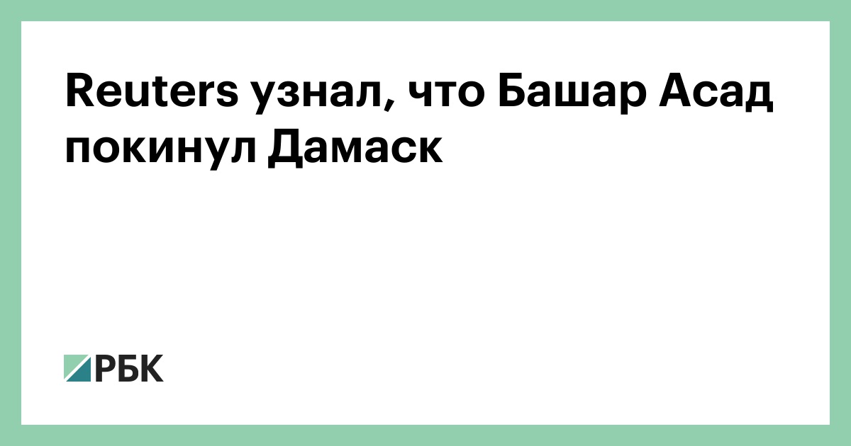 Президент Сирии Башар Асад покинул столицу страны на самолете, сообщают источники Reuters и Al Hadath.