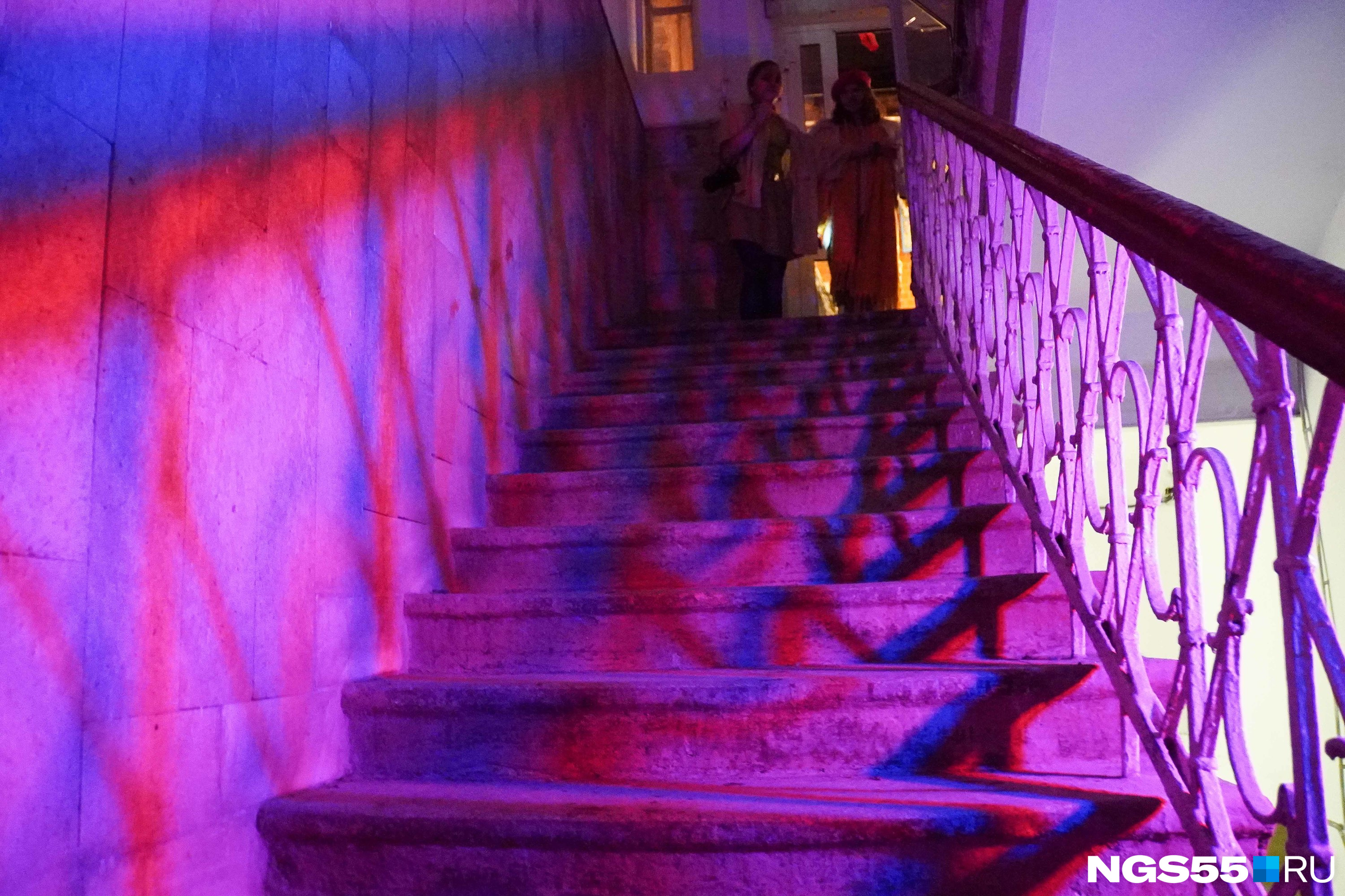Ровно в 17:30 я стою перед старой дверью. Чтобы попасть внутрь, нужно позвонить в домофон. Ощущение, что я захожу в подъезд обычной хрущевки, только с высокими потолками. Здесь пыльный пол, раздолбанные ступени и тесная лестница. Всё преображается, когда я поднимаюсь на второй этаж: старые ступени заливает фиолетовый неоновый свет, будто скрывая все недостатки и создавая ощущение праздника. В ушах стучит бит, а возле входа толпятся девушки в цветных кофтах.