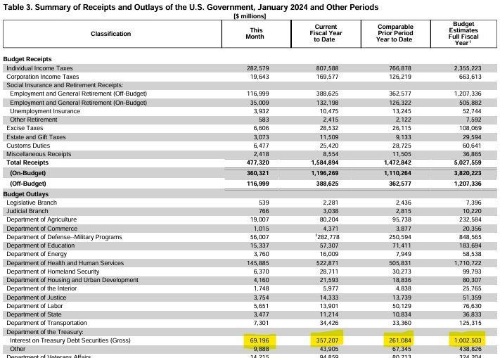 За год США будет выплачивать 1 трлн долларов, а за 10 лет - около 3 триллионов. Выплаты уже превышают военные расходы и вскоре станут самой крупной статьёй расходов всего бюджета. ФРС будет вынуждена печатать деньги. @banksta