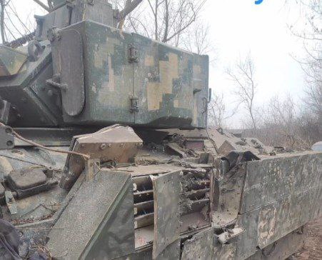 Американская БМП M2A2 Bradley ODS-SA украинской армии после прямого попадания противотанковой управляемой ракеты.