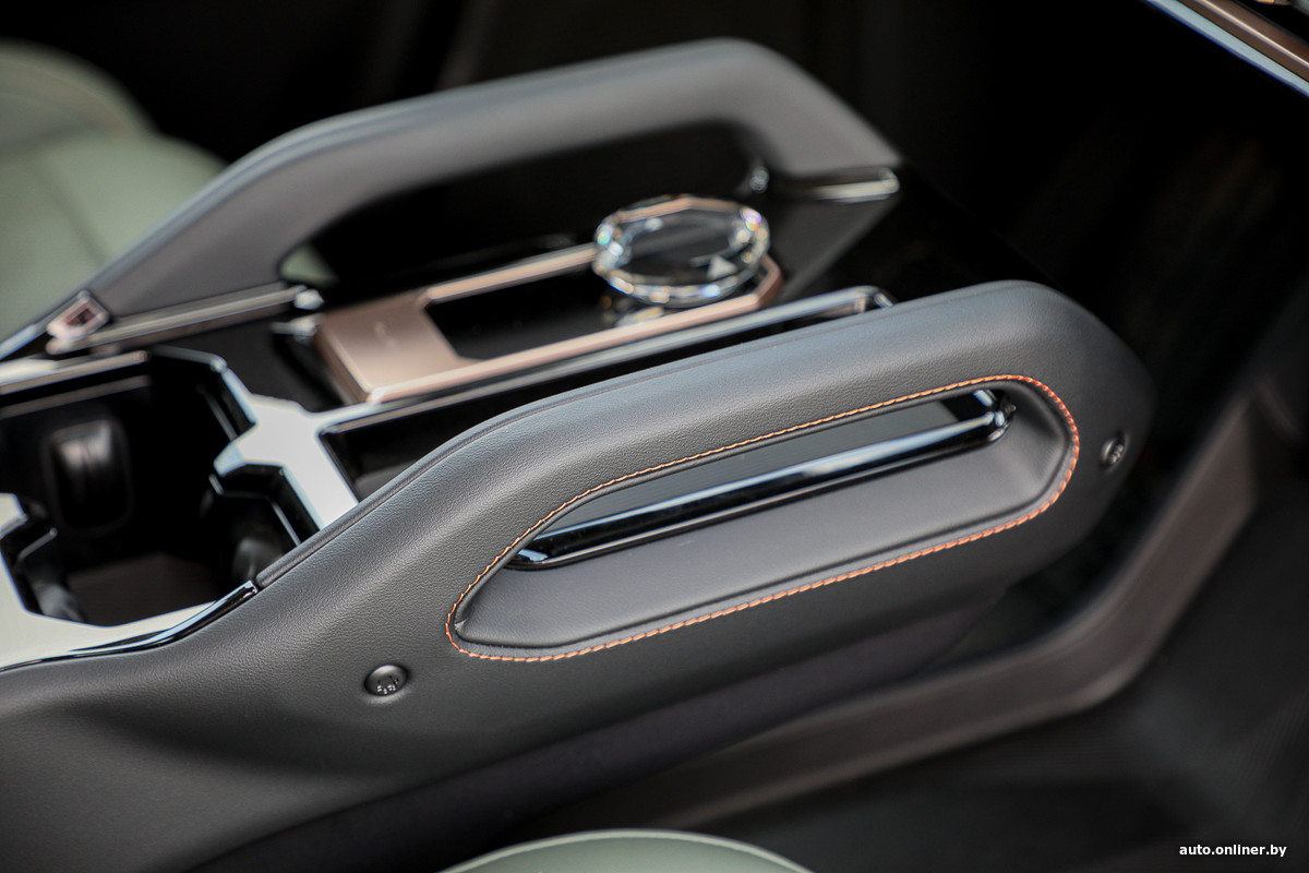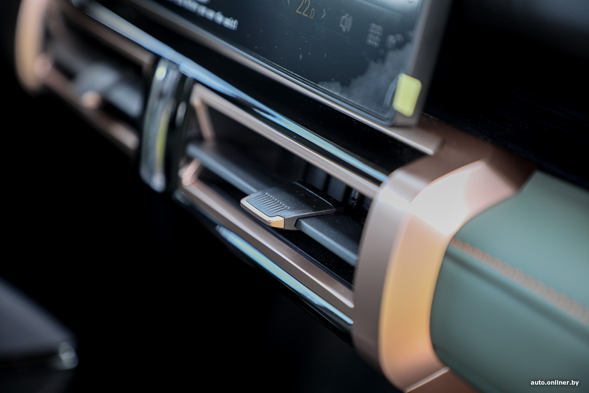 15,6-дюймовый экран работает на базе чипа Qualcomm Snapdragon 8155, так что помимо приятной графики и очень четкой картинки с камер он радует скоростью отклика — а тыкать в него для управления теми или иными функциями придется часто. Ну разве что при помощи барабанчиков на руле можно менять громкость и периодически регулировать температуру (да-да, и здесь климат-контроль то жарит, то морозит).