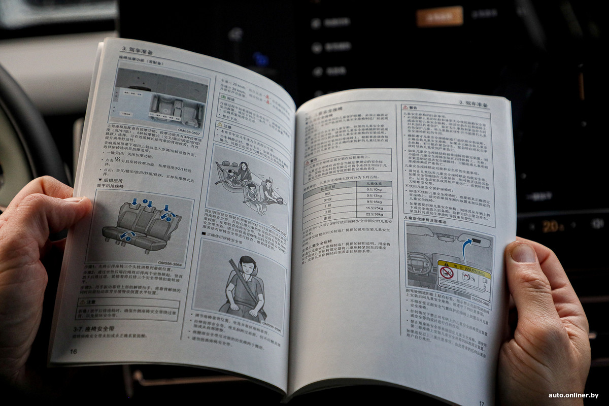 Соответственно, стеклоочистителем должен управлять левый подрулевой переключатель. Но кнопкой в торце можно вызвать лишь однократный взмах щеткой или включить омыватель, а вот все остальные режимы придется включать через тачскрин. Виртуальную кнопку включения заднего стеклоочистителя удалось отыскать далеко не с первой попытки, а все потому, что меню прибывшего из КНР автомобиля — полностью на китайском.