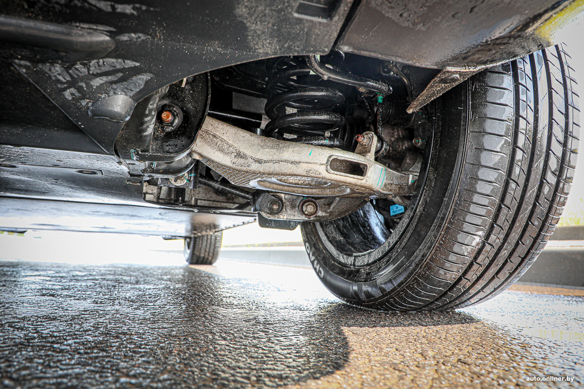 Да, этот автомобиль сразу начинаешь позиционировать для себя как внедорожник, а не просто как стильный кроссовер. Ну да, со свободными дифференциалами без блокировок и полностью независимыми подвесками (спереди стойки McPherson, сзади алюминиевая «многорычажка»).