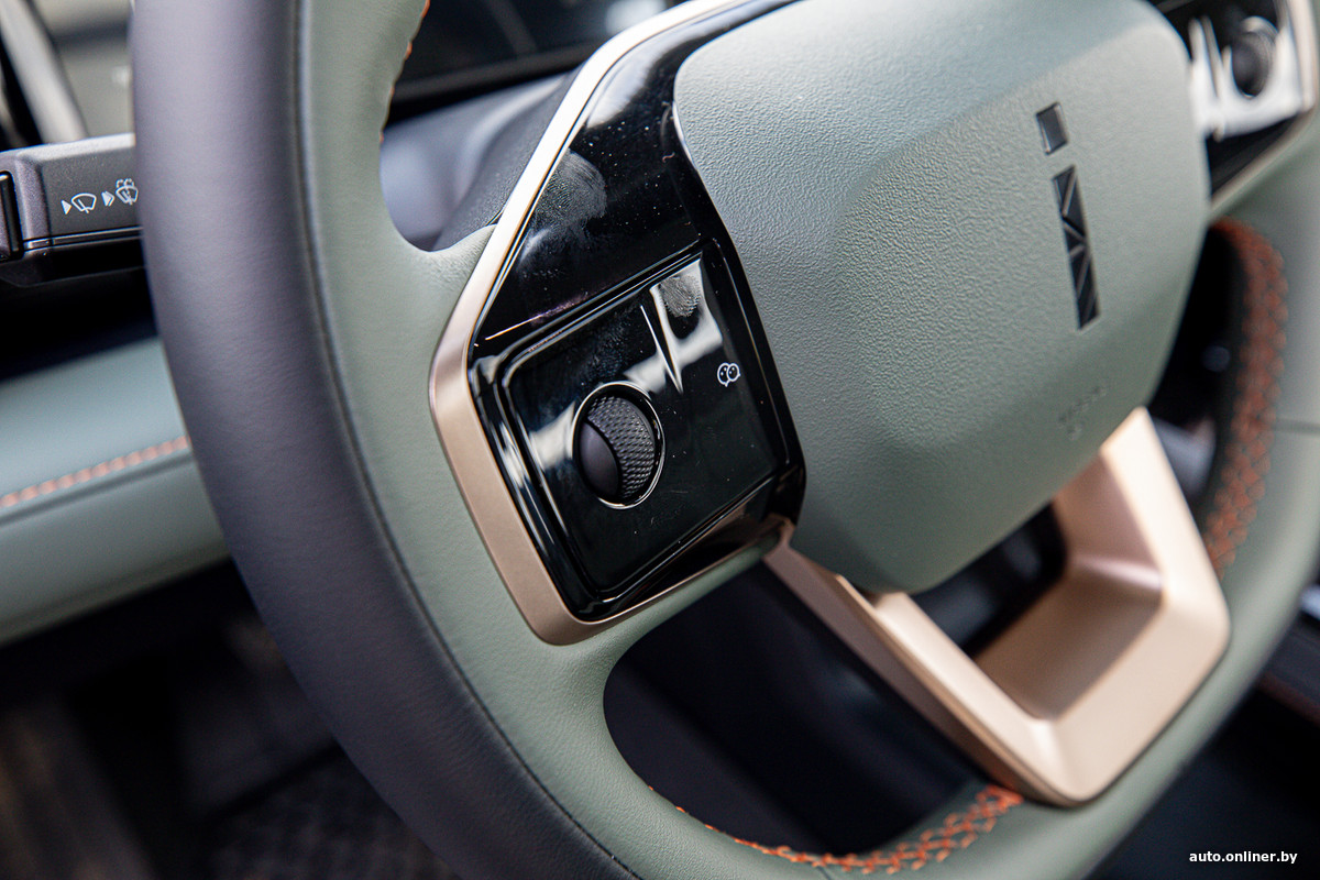 А ведь само шасси как раз настроено под активную езду. Крены и клевки умеренны, реакции неожиданно острые — в повороты iCar 03 заныривает охотно, проходит их точно. Контроль над автомобилем неожиданно хороший, будто это небольшой хетчбэк, а не довольно тяжелый SUV.