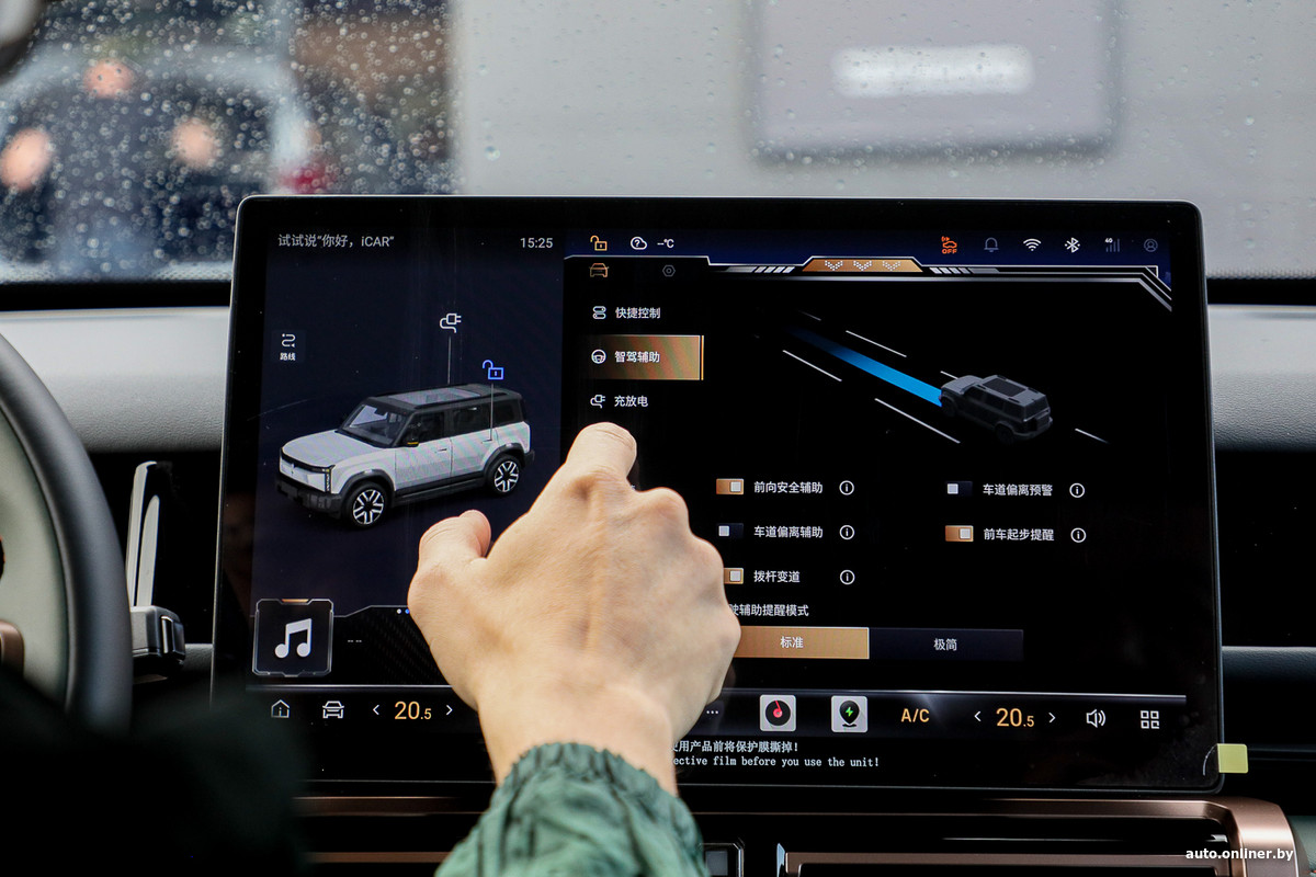 В оснащение модели входит комплекс ездовых ассистентов ADAS второго уровня автономности, то есть iCar 03 способен поддерживать безопасную дистанцию до впереди идущего автомобиля, автоматически тормозить при возникновении риска столкновения или наезда на пешехода, держаться занимаемой полосы и так далее. В общем, все строго по последней моде. Ну а как насчет ходовых качеств?