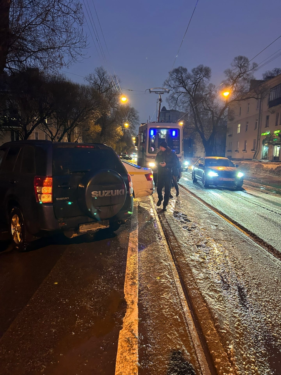 А на улице Савушкина ДТП с участием двух легковых машин заставило менять маршруты трамваев. Возле дома 37 столкнулись кроссовер «Сузуки» и легковое такси, пишут в группе. Удар, судя по фото, пришелся в водительскую дверь такси. В нем ехали женщина с ребенком, пишут очевидцы. Машины частично перегородили трамвайные пути. В результате трамвайное движение на участке встало на полтора часа — с 8:31 до 10:08, рассказали «Фонтанке» в пресс-службе СПб ГУП «Горэлектротранс». «Организатор перевозок» сообщал, что трамваи №21 и №48 временно были направлены по измененным трассам.