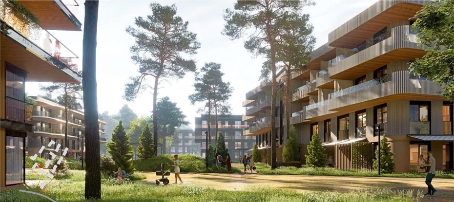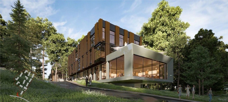 При возведении объектов санаторного комплекса будут использоваться прибалтийско-ленинградские архитектурные мотивы, деревянные рейки и элементы из стекла, а первые этажи с террасами отделят от улицы зелёными экранами.