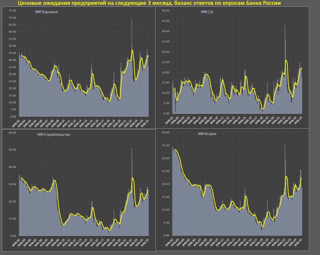 По индексу в фев.25 – 20.3 пункта, а когда инфляционная проблема временно ушла в период с июн.22 по июн.23 индекс был в среднем 16.7 пунктов. Это я к вопросу ориентира, когда ЦБ может посчитать достаточную стабилизацию инфляционных ожиданий, чтобы приступить к смягчению ДКП.