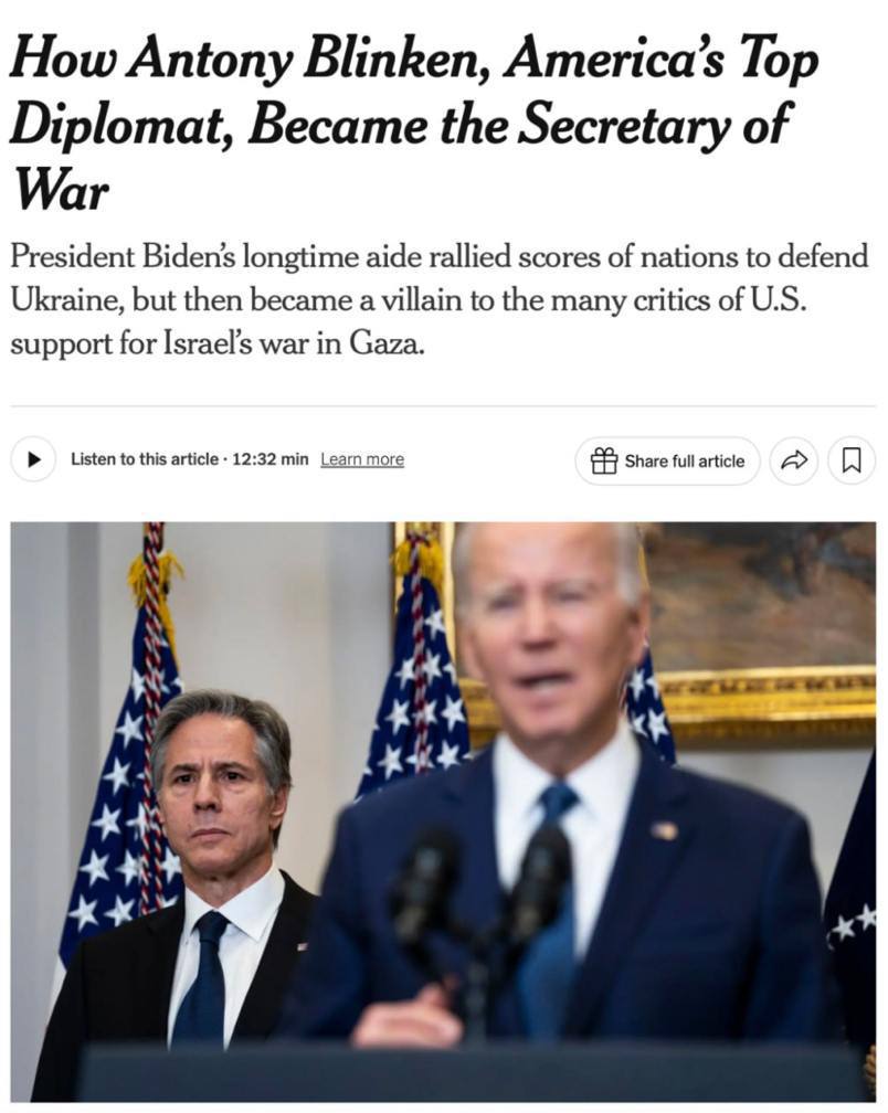 ❗️Издание The New York Times утверждает, что председатель Объединенного комитета начальников штабов США Марк Милли в конце 2022 года предложил Украине «использовать свои успехи на поле боя для начала мирных переговоров с Москвой», —однако госсекретарь Энтони Блинкен посоветовал «продолжать борьбу»