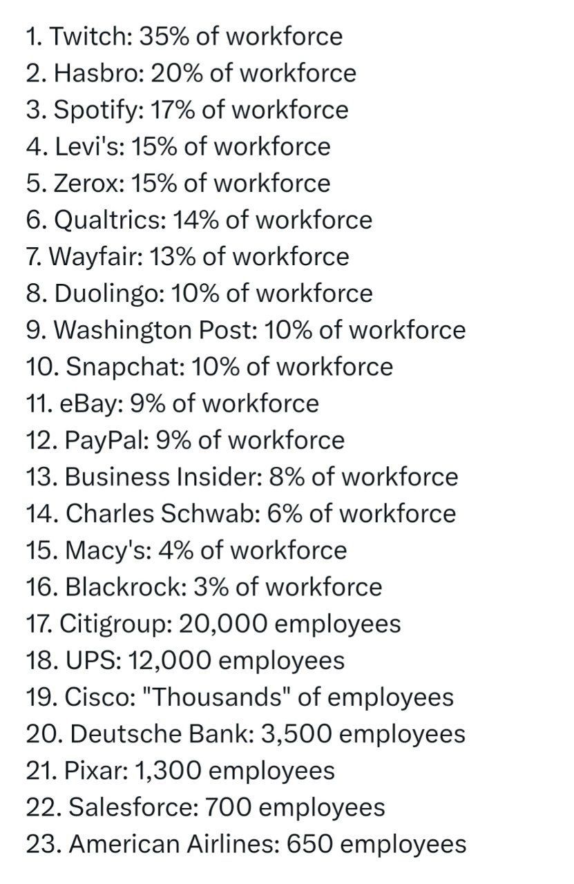 За январь 2024 года в крупных компаниях произошло в общей сложности 82 000 увольнений, это второй худший январь с 2009 года. @banksta