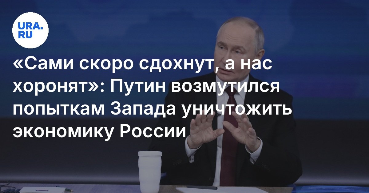«Что в странах Запада происходит? Они все время нас хоронят. Сами скоро сдохнут там, а нас хоронят, не переставая», — сказал Путин. Его слова передает корреспондент URA.RU.