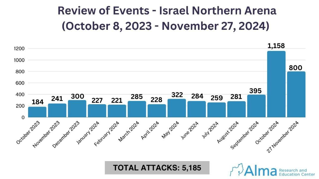 27 ноября началось прекращение огня с «Хезболлой». С начала войны 8 октября 2023 года против Израиля со стороны Ливана было совершено 5185 нападений (количество атак, а не количество примененных вооружений).