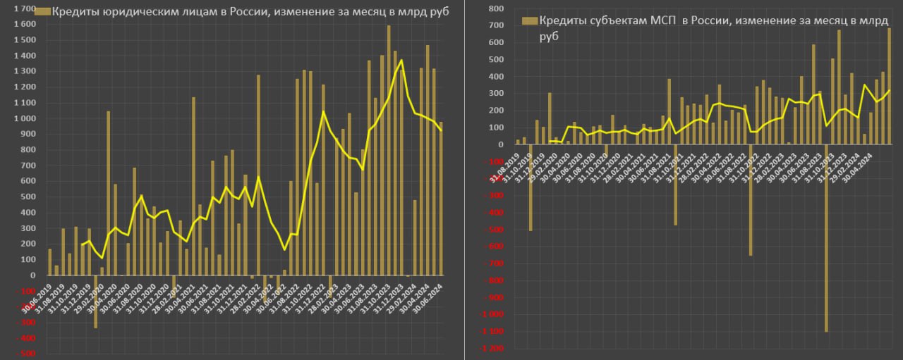 Чистый прирост корпоративных кредитов за 1П24 составил 5.55 трлн vs 4 трлн за аналогичный период в 2023 и 2.4 трлн руб за 1П21.