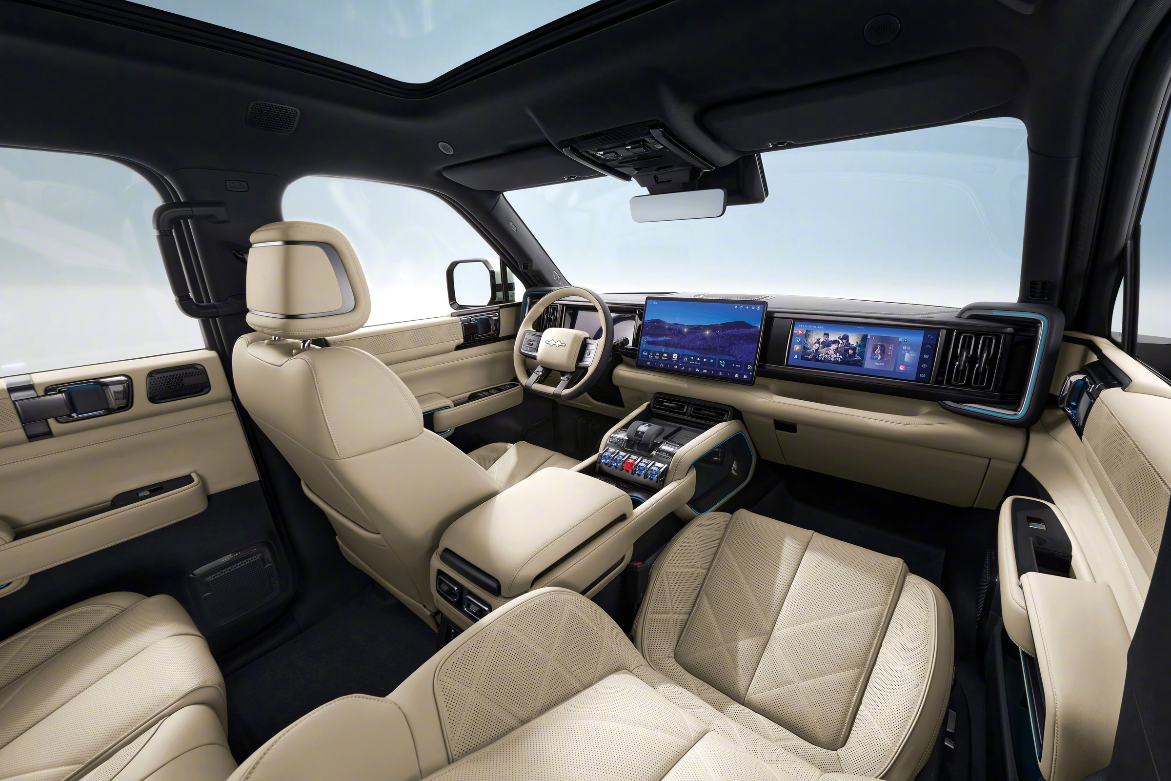 Обновление принесло Leopard 5 более лаконичные на вид бамперы (передний лишился выпирающих клыков), большинство пластиковых деталей теперь окрашены в цвет кузова. Главное техническое приобретение — системы автономного вождения: в комплектациях попроще это доморощенный комплекс God's Eye C от BYD, в комплектациях подороже — Qiankun ADS 3.0 от Huawei (такие машины имеют выступ с лидаром над лобовым стеклом).