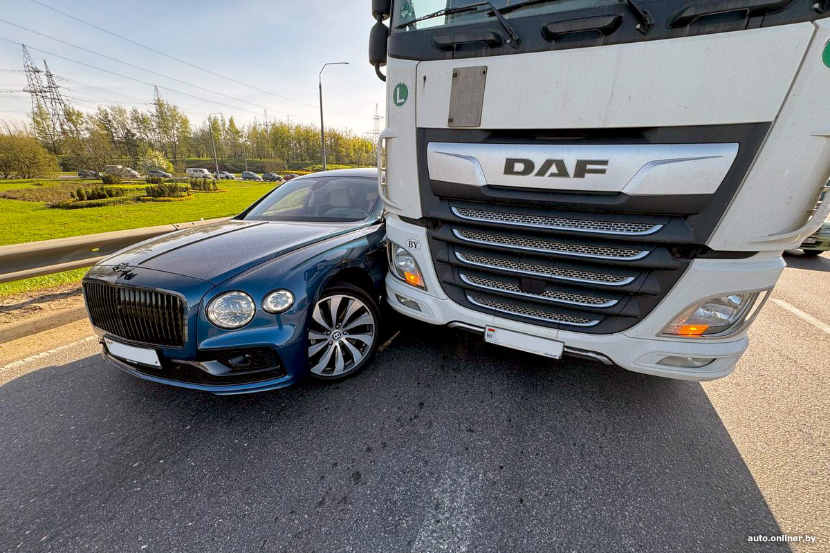 24 апреля на МКАД, в районе выезда с улицы Кижеватова, произошла авария. И, несмотря на то что транспортные средства столкнулись на малой скорости, последствия такого ДТП весьма значительные, дорогие в прямом смысле слова. Потому что столкнулись Bentley и грузовой DAF.