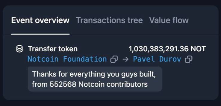 Коммьюнити Notcoin задонатило Павлу Дурову монет на $6,8 млн. Это больше миллиарда Notcoin.