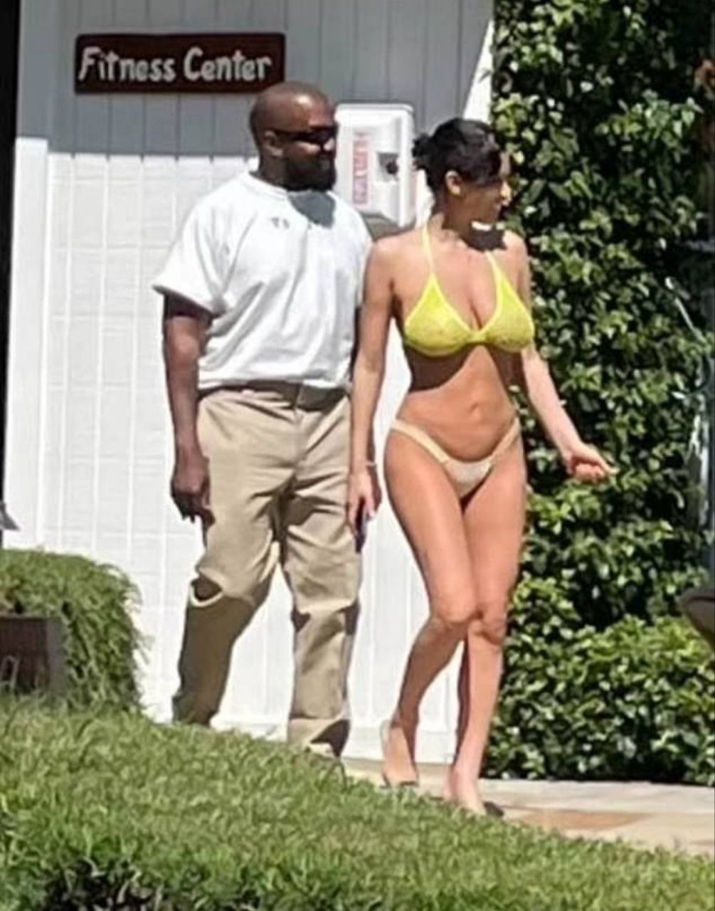 Не перестаем удивляться парным образам Канье Уэста и Бьянки Ценсори: она — в купальнике, он — чуть ли не в офисном костюме.