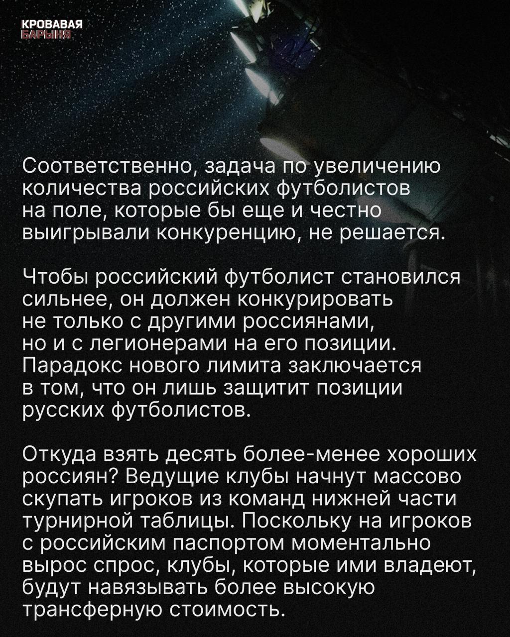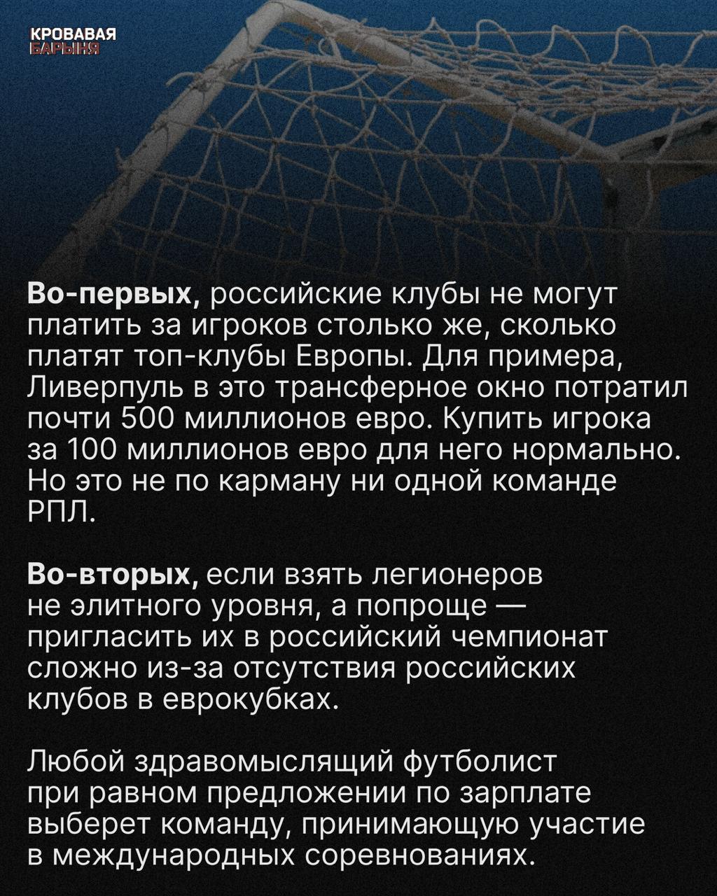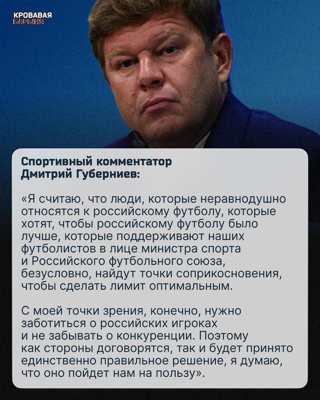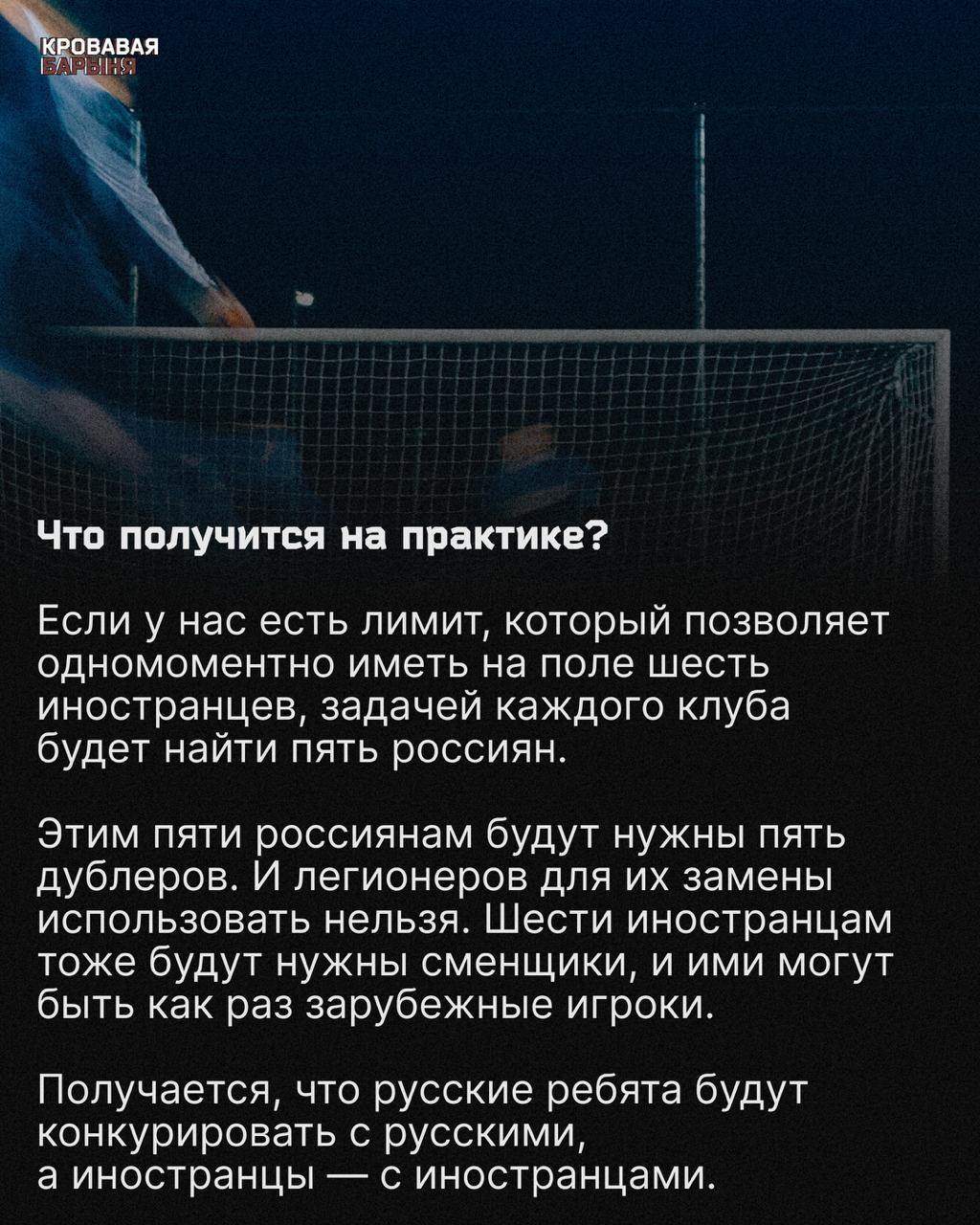 Министр спорта РФ Михаил Дегтярёв предложил ужесточить лимит на легионеров в РПЛ к 2028 году. Такое решение якобы должно дать бóльшую возможность проявить себя российским футболистам.