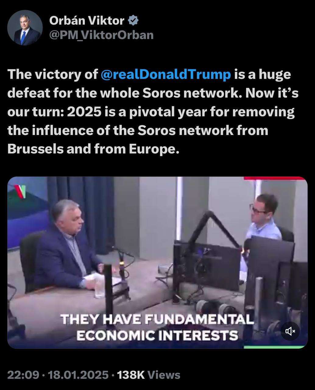 "Π’Π΅ΠΏΠ΅ΡΡ Π½Π°ΡΠ° ΠΎΡΠ΅ΡΠ΅Π΄Ρ: 2025 Π³ΠΎΠ΄ - ΠΊΠ»ΡΡΠ΅Π²ΠΎΠΉ Π³ΠΎΠ΄ Π΄Π»Ρ ΡΡΡΡΠ°Π½Π΅Π½ΠΈΡ Π²Π»ΠΈΡΠ½ΠΈΡ ΡΠ΅ΡΠΈ Π‘ΠΎΡΠΎΡΠ° Π² ΠΡΡΡΡΠ΅Π»Π΅ ΠΈ Π² ΠΠ²ΡΠΎΠΏΠ΅", β Π½Π°ΠΏΠΈΡΠ°Π» ΠΡΠ±Π°Π½ Π² ΡΠΎΡΡΠ΅ΡΠΈ X.