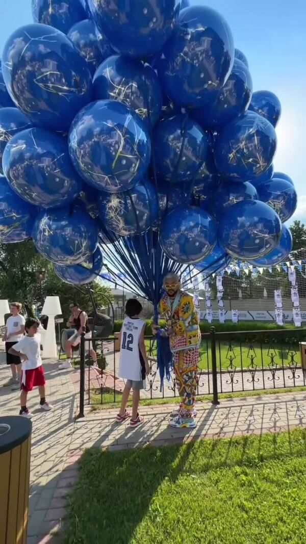Затем Филипп подвел именинника к гигантской связке синих воздушных шаров. «По сложившейся доброй традиции мы их запускаем — в цвете твоей любимой команды и моей любимой песни „Цвет настроения синий“. Загадывай желание и отпускай в небеса», — инструктирует поп-король сына. Приняв из рук отца связку, Мартин последовал его совету.