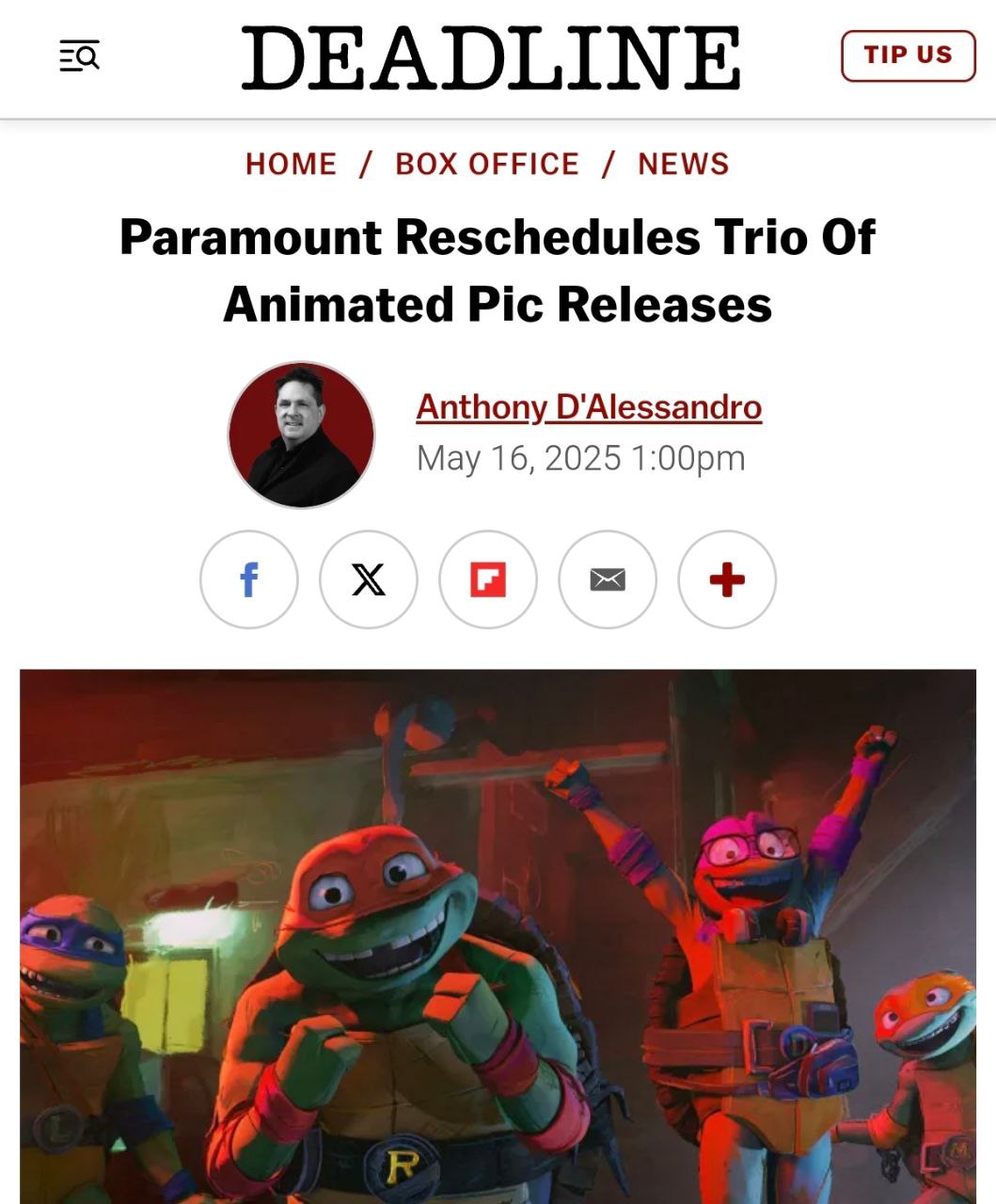 Вместе с этим студия отложила релиз «Черепашек-ниндзя: Погрома мутантов» почти НА ГОД: с 9 октября 2026 года на 17 сентября 2027 года.