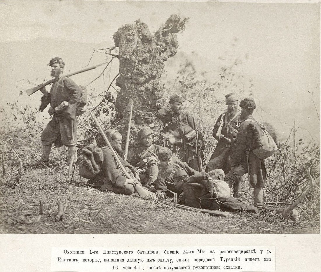 Казаки-пластуны в Русско-турецкой войне 1877-1878 гг после победного получасового рукопашного боя с турками.