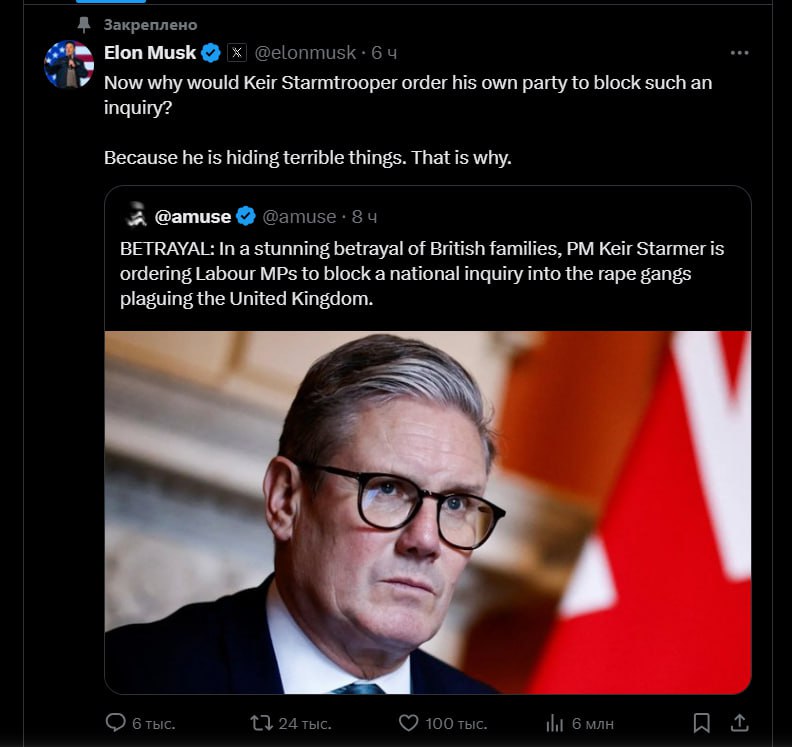 π Π‘Π°ΠΌ ΠΠ»ΠΎΠ½ ΠΠ°ΡΠΊ ΠΎΠ±Π²ΠΈΠ½ΠΈΠ» Π‘ΡΠ°ΡΠΌΠ΅ΡΠ° Π² ΠΏΡΠ΅ΡΡΡΠΏΠ»Π΅Π½ΠΈΠΈ ΠΈ ΠΏΡΠ΅Π΄Π°ΡΠ΅Π»ΡΡΡΠ²Π΅ Π±ΡΠΈΡΠ°Π½ΡΠΊΠΎΠ³ΠΎ Π½Π°ΡΠΎΠ΄Π°: