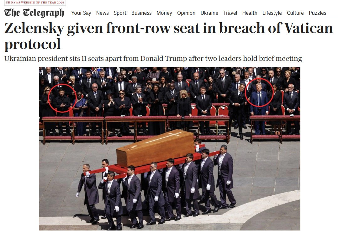 Ватикан нарушил протокол похорон папы римского ради Владимира Зеленского – The Telegraph