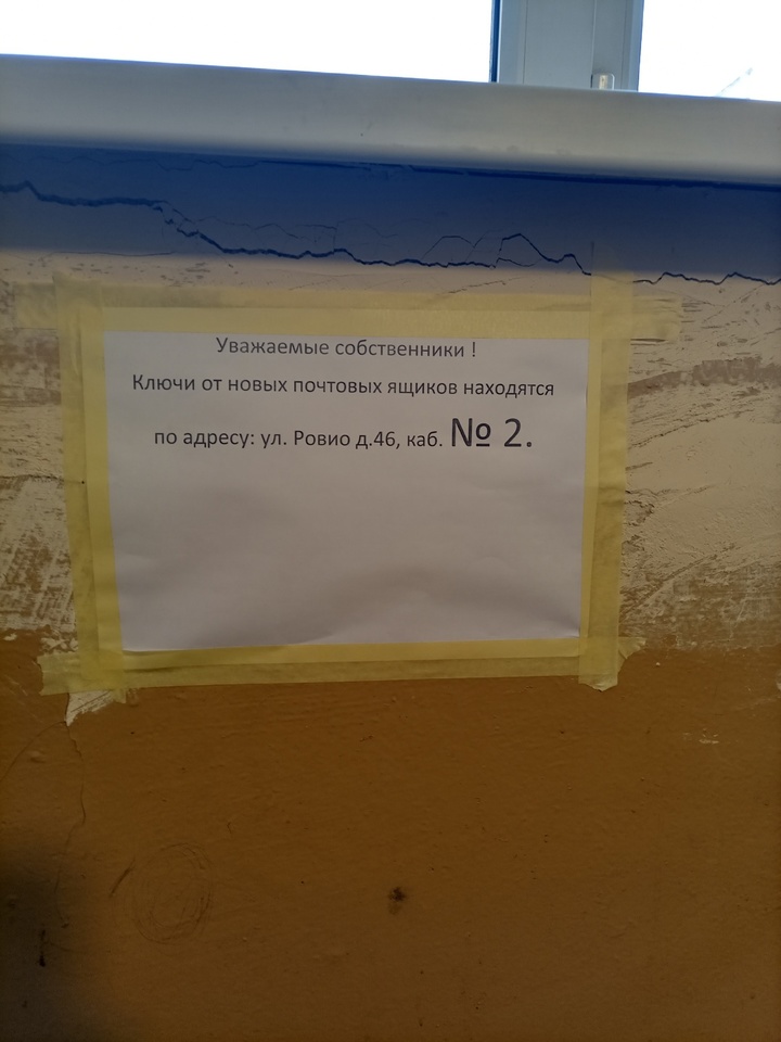 Всё, что сделали, коммунальщики – оставили объявление с адресом дома, в котором выдают ключи от ящиков. Этот дом находится на расстоянии без малого 800 метров.