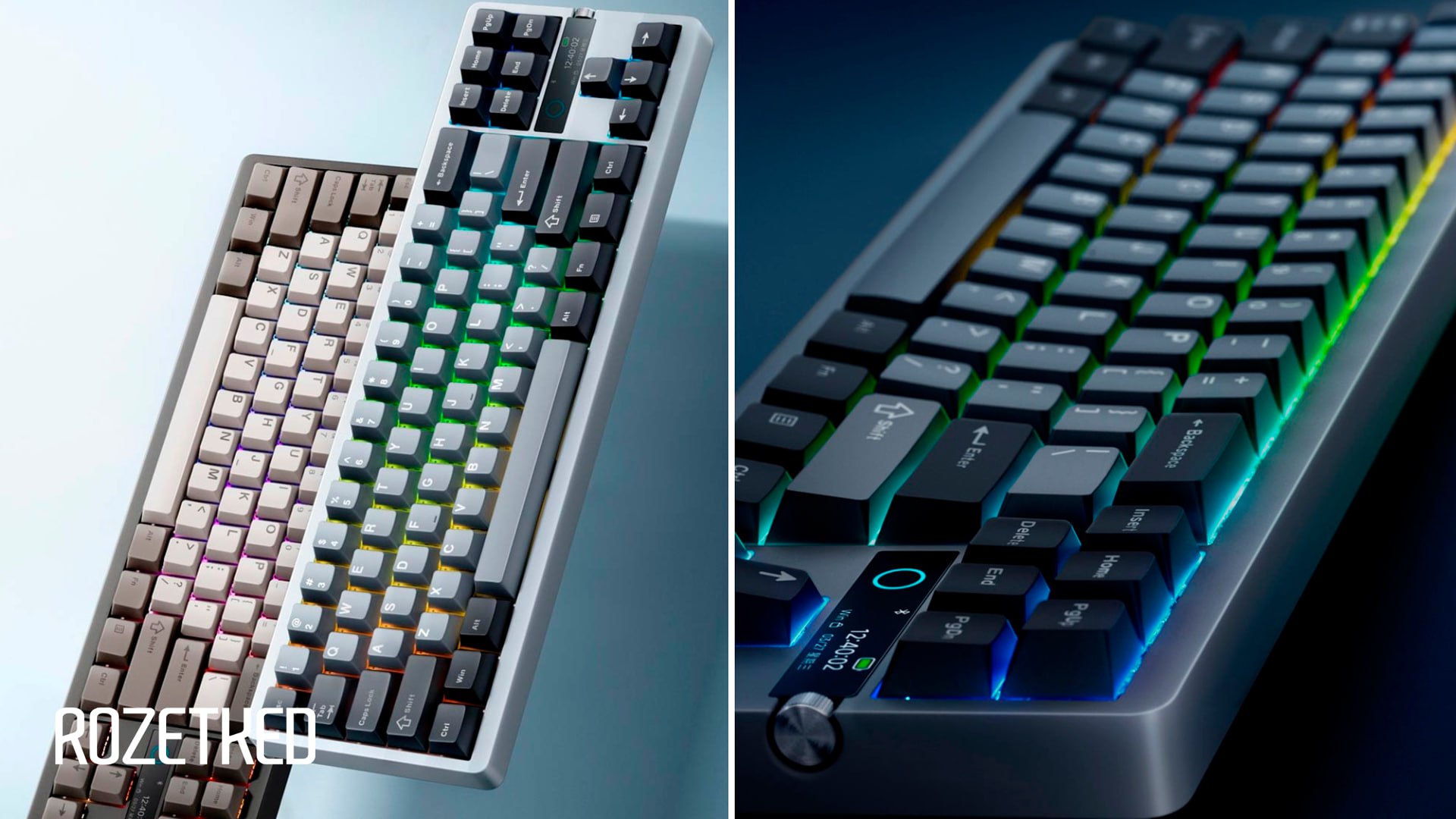 71 клавиша, горячая замена переключателей, 1-дюймовый LCD-экран, три режима подключения, батарейка 7800 мАч и автономность до 140 часов.
