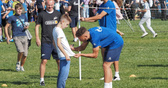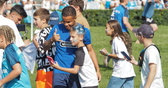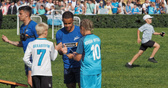 Футболисты начали легкую разминку с мячами. В какой-то момент организаторы предложили запустить детей, чтобы они могли сфотографироваться с футболистами и взять у них автограф.