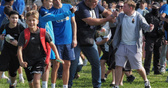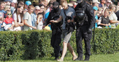 Однако вслед за детьми начали выбегать взрослые. Стюарды еле успевали их отлавливать. На подмогу пришли полицейские, как минимум одного болельщика задержали.