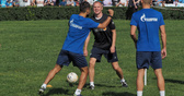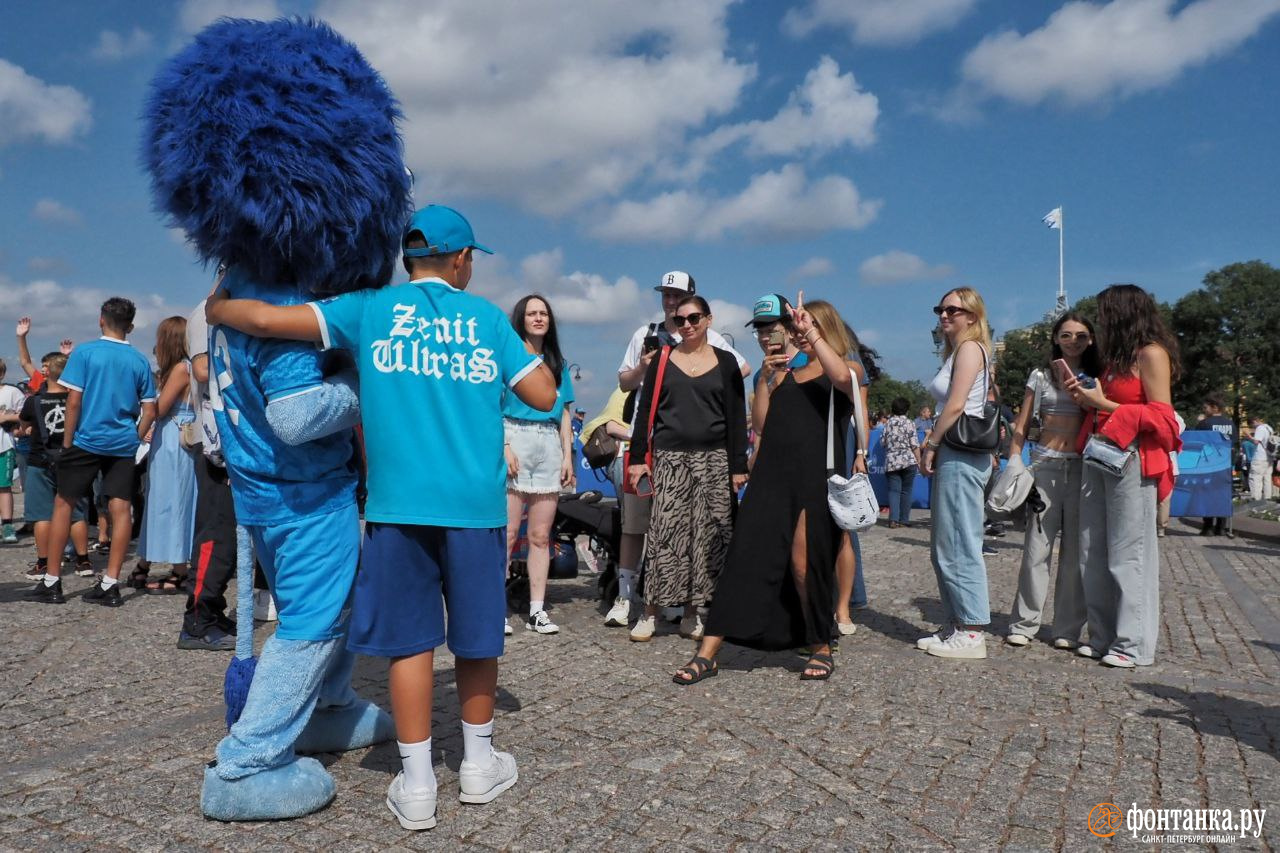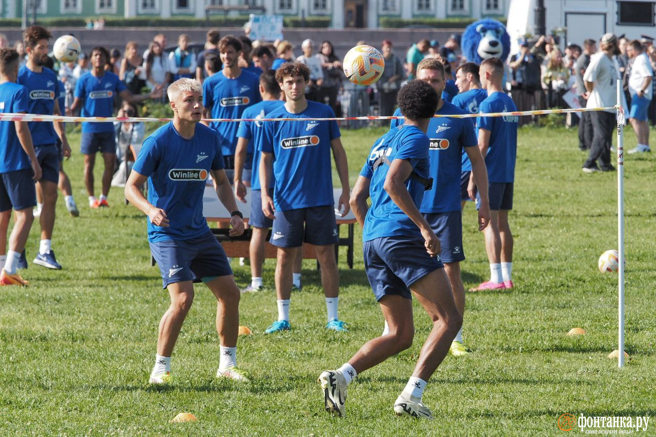 Перед началом тренировки сине-бело-голубые организовали фестиваль болельщиков. Все желающие могли принять участие в мастер-классах, сыграть в настольный футбол, сделать фанатские плакаты, выиграть призы, а также сфотографироваться со всеми тремя трофеями «Зенита» прошлого сезона.