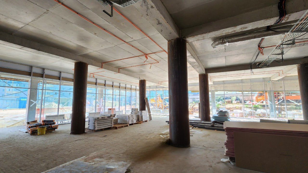 Здание в виде раскрытой книги строят в рамках нацпроекта «Образование». Сейчас, по данным губернатора, на объекте строители утепляют кровлю и фасад, монтируют инженерные системы. Параллельно они приступили к внутренним работам и черновой отделке первого этажа. Также началась облицовка фасада.