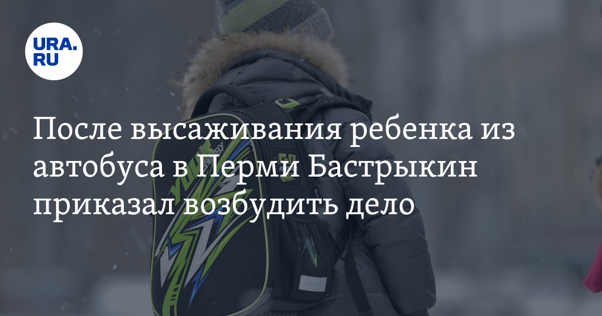 «В СМИ сообщили, что 10-летнего мальчика высадили из автобуса из-за проблем с оплатой проезда. Председатель СКР Александр Бастрыкин поручил руководителю пермского управления СК возбудить уголовно дело», — говорится в сообщении ведомства. также Бастрыкину будет представлен доклад о предварительных и окончательных результатах этого дела.