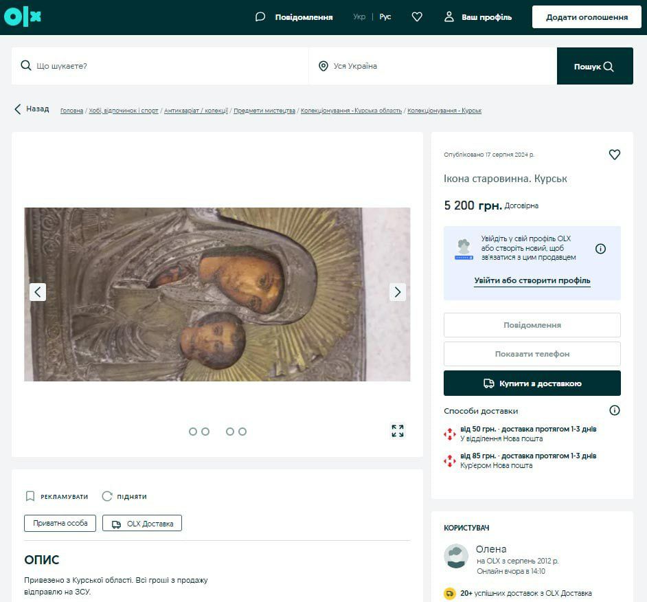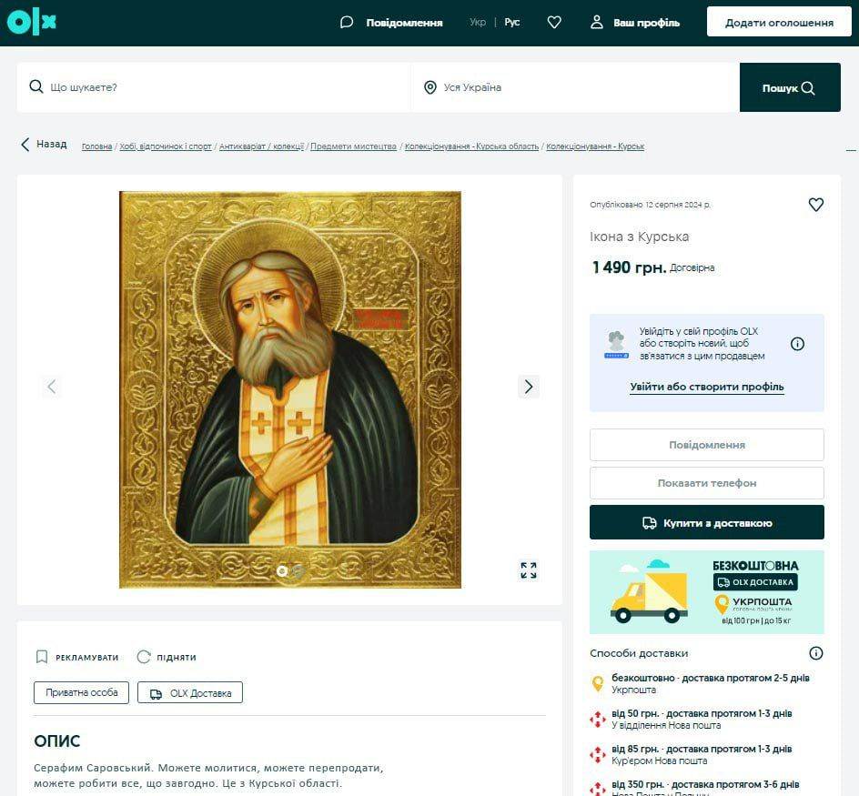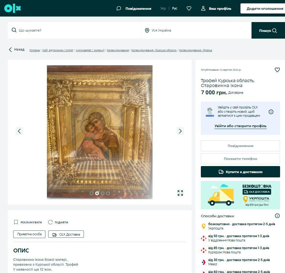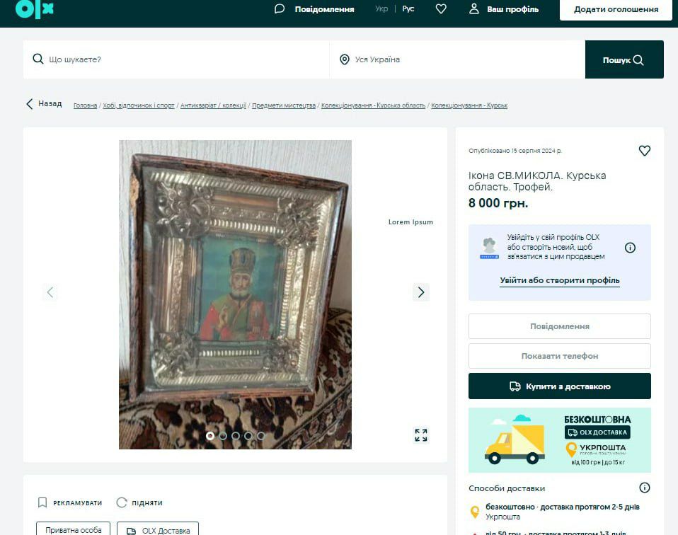Украденные православные иконы уже вовсю продают на торговых интернет площадках Украины.