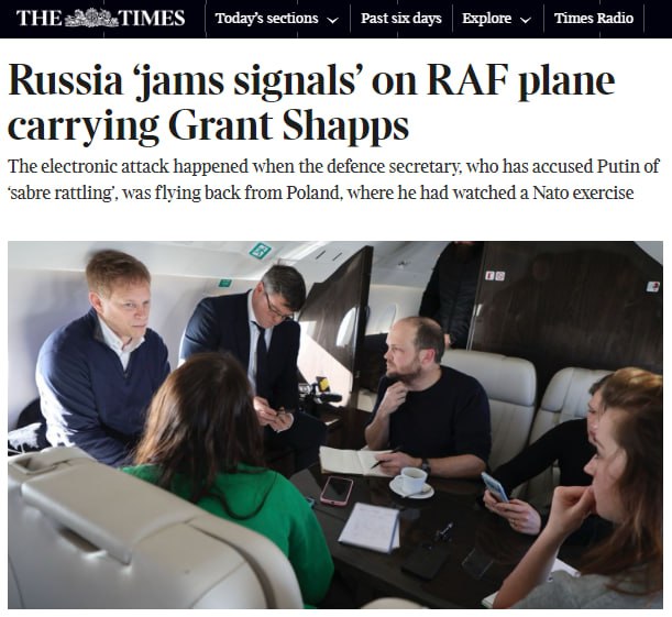 Во время пролёта у границ Калининградской области британский самолёт, на котором министр обороны Грант Шэппс возвращался из Польши, лишился навигации и связи. Пилотам пришлось вспоминать «альтернативные методы», чтобы определить своё местоположение, пишет The Times.