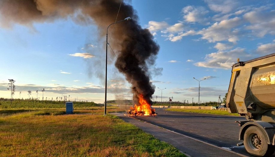 На фото: Последствия ДТП с загоревшимся автомобилем на Приозерском шоссе, июнь 2024 года.