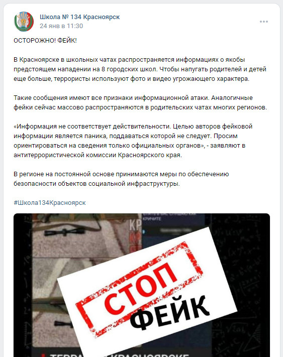 Напомним, последние дни в соцсетях разошлись анонимные сообщения, что якобы в школах города готовятся теракты и массовые расстрелы учеников. Краевые власти и правоохранители заявили, что это фейк, и никаких терактов не готовится. В интернет-группах школ появились соответствующие разъяснения для учащихся и родителей, чтобы они не верили фейкам.