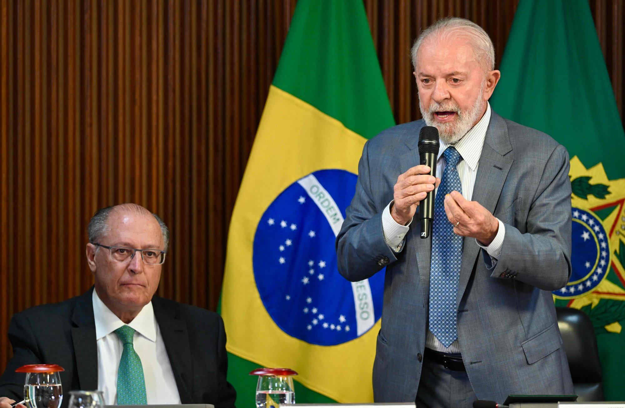 Brazilian President Luiz Inacio Lula da Silva (right) speaks as Vice-President and Minister of Industry and Trade Geraldo Alckmin looks on at the Planalto Palace in Brasilia on May 13, 2024. Photo: AFP