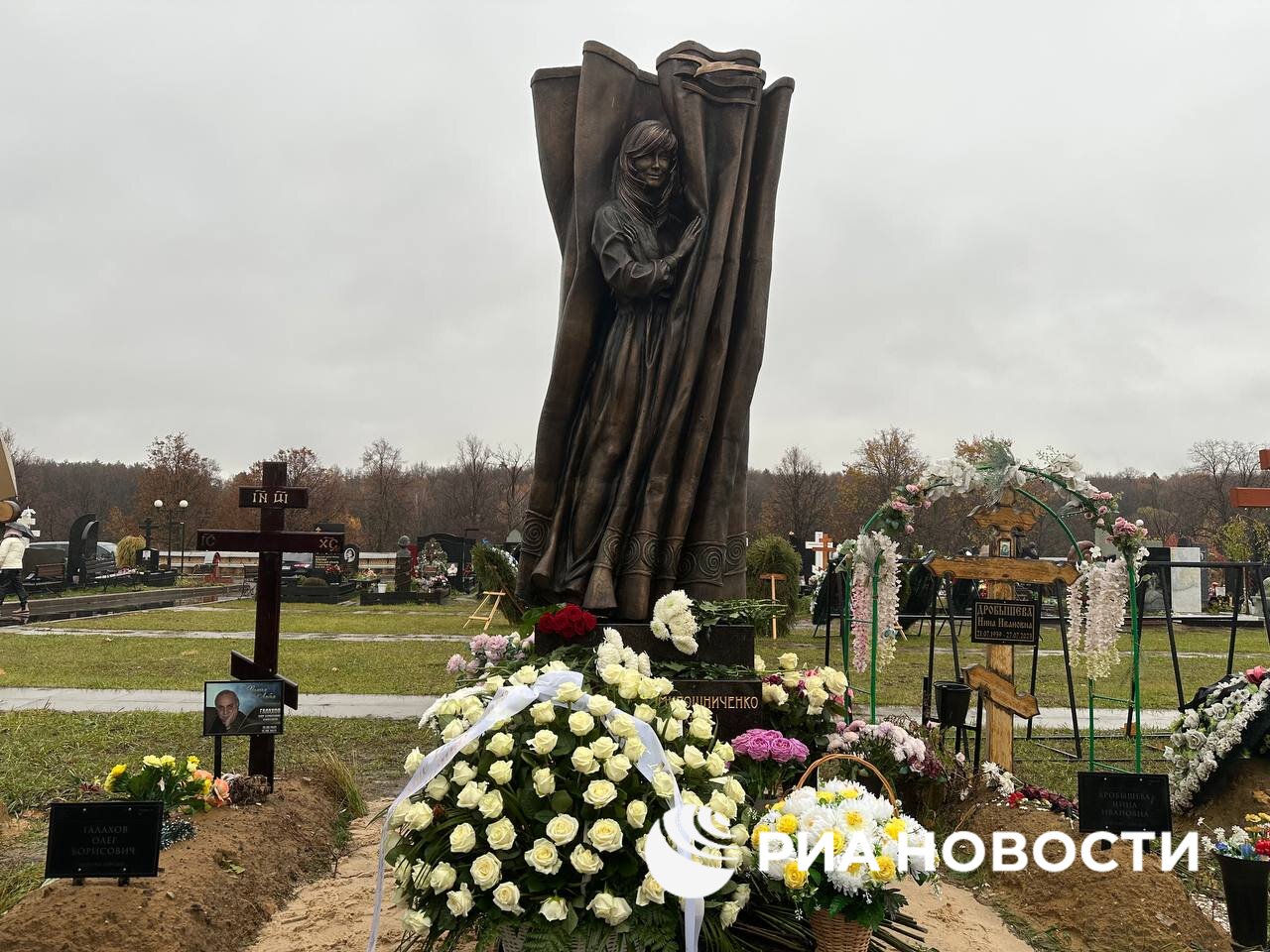 Памятник народной артистке России Ирине Мирошниченко открыли на Троекуровском кладбище. С инициативой создать монумент выступили родственники и друзья артистки. Его автор – скульптор Салават Щербаков.