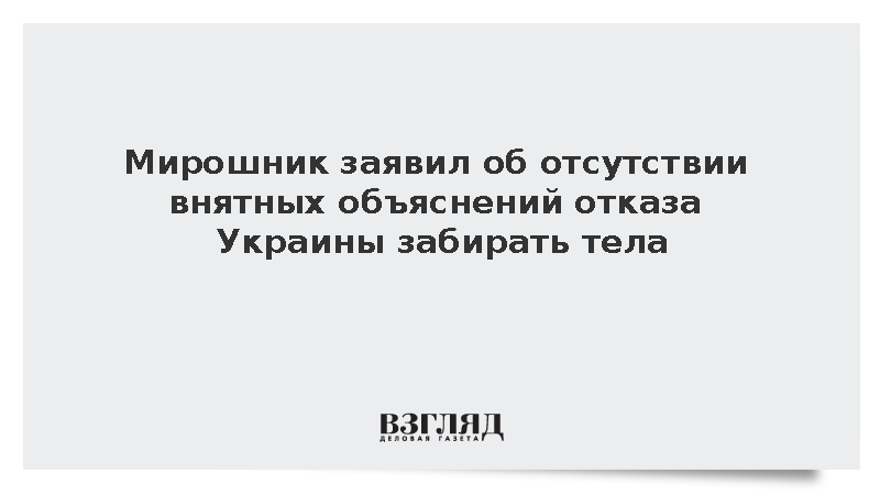 Украинские власти не дали внятных разъяснений по поводу отказа своевременно забрать тела погибших военнослужащих, заявил посол по особым поручениям МИД России по вопросам преступлений киевского режима Родион Мирошник.