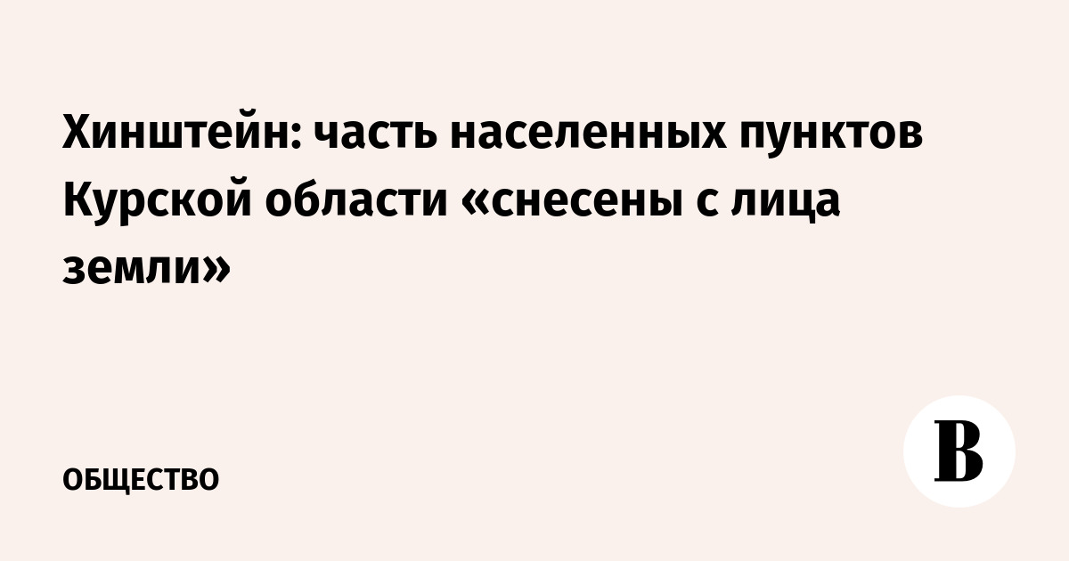 Некоторые населенные пункты в Курской области, находящиеся в зоне боевых действий, частично или полностью «снесены с лица земли». Об этом заявил врио губернатора региона Александр Хинштейн, видео с заявлением опубликовано в его Telegram-канале.